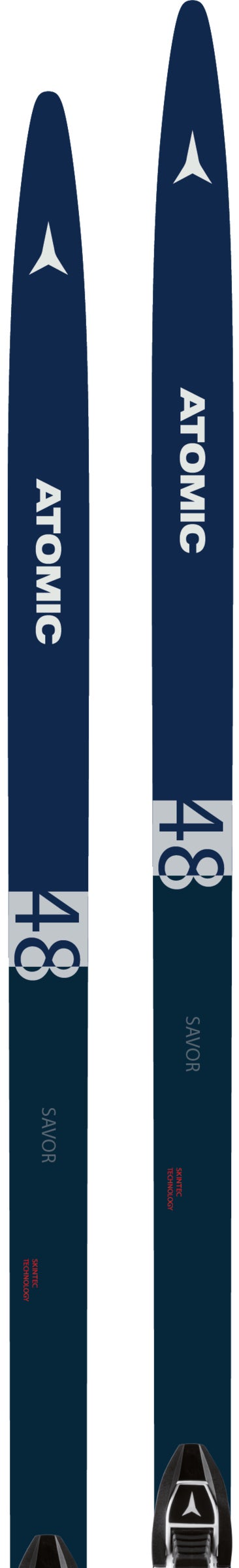 The Atomic Savor 48 Skintec is an easy breezy touring ski, all about making the journey easier so you can get your head up and enjoy your surroundings even more. The broad sidecut makes it really stable. And thanks to waxless Skintec technology there’s no need for time-consuming kick-waxing. Instead, just jump on the ski and the Mohair grip zone gives you a perfect kick and ride in all snow conditions and temperatures! Then if you need to change skins, its quick, easy, and anyone can do it – with the option of a universal skin (pre-set on the ski) and a grip skin with better grip properties. Finally, the ski comes with a ready-mounted Prolink Shift Plate.